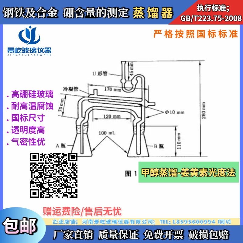 蒸馏器GB/T233.75钢铁及合金 硼含量的测定甲醇蒸馏-姜黄