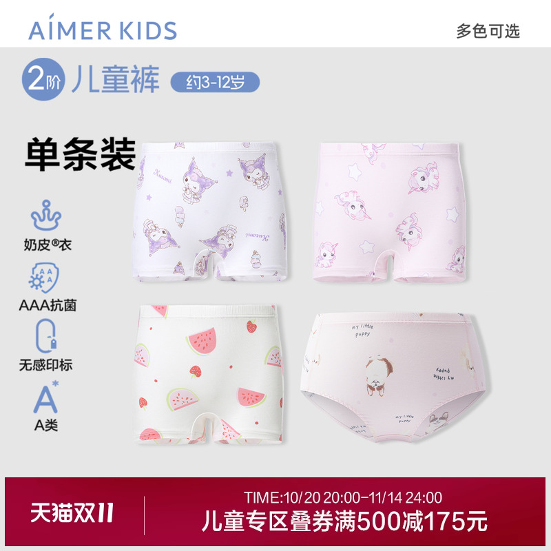 爱慕儿童天使小裤奶皮素色抗菌A类女孩中腰平角裤/三角裤