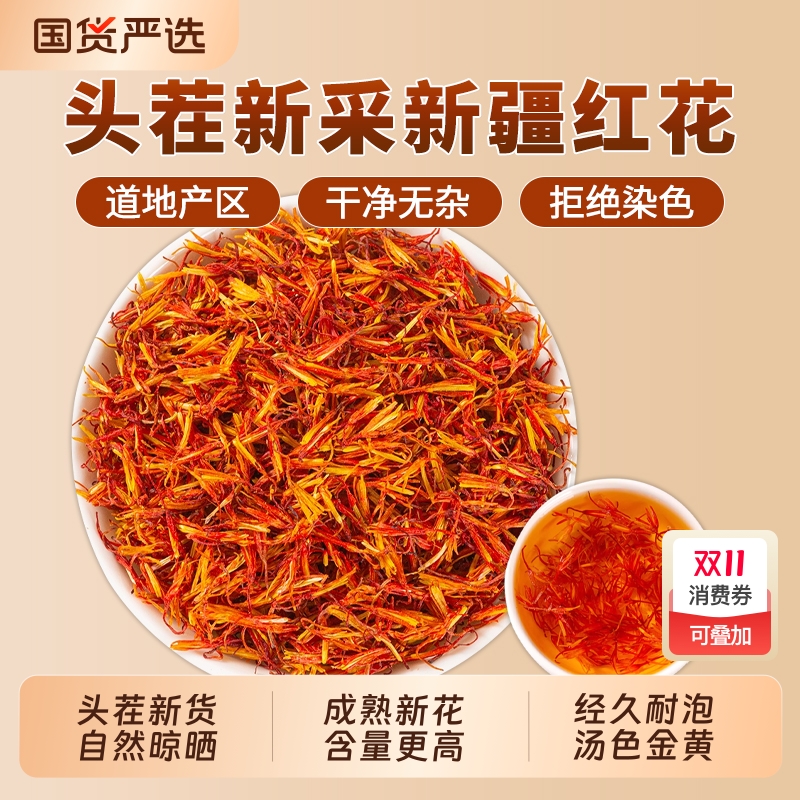 新疆红花中药材藏红花草红花茶泡茶酒正品官方旗舰店药用泡脚特级