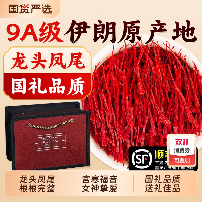 藏红花伊朗特级正宗长丝西红花女性泡水喝养生红花茶中药材礼盒装