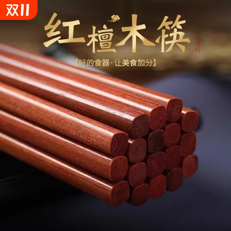 防霉鸡翅木筷子红檀木食品级家用分餐无漆无蜡实木家庭耐高温批发