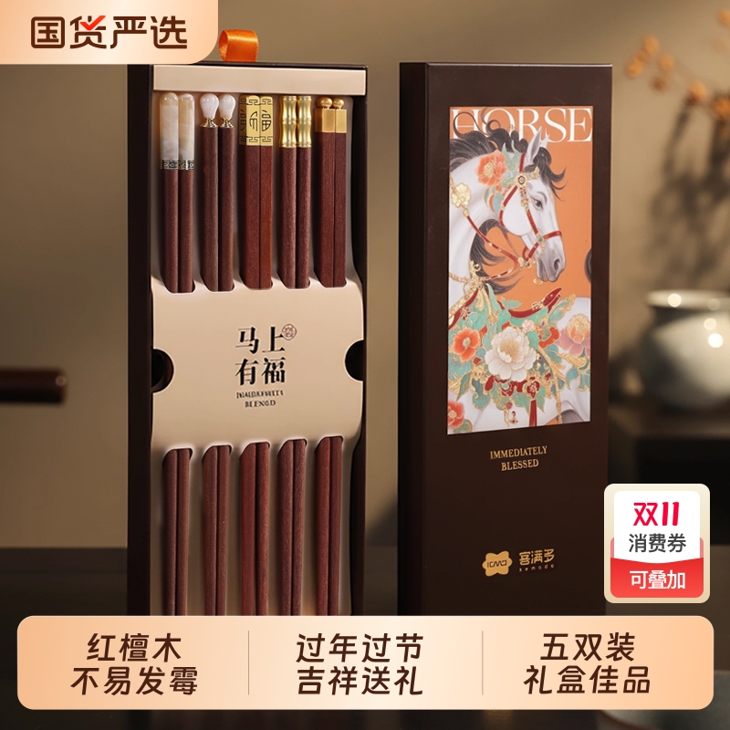 双枪红檀木筷子2025新款高档抗菌防霉防滑木质快筷子油炸耐高温