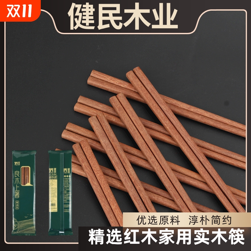 红檀木筷子食品级家用纯天然原木防滑防霉家庭中式实木筷子耐高温