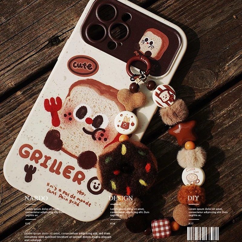 面包咖啡法棍甜甜圈手机链包挂ins风纳多手工羊毛毡防丢绳ccd挂