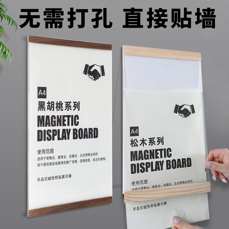 照片墙公司企业宣传展示板相框免打孔实木展示N磁性a4公告栏通知