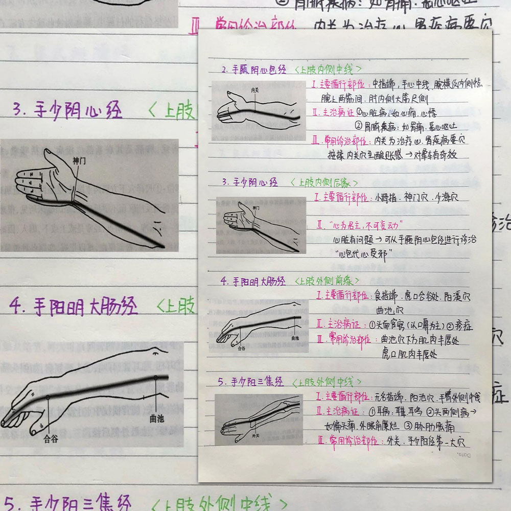 中医养生十四经脉流注顺序科普医学生手写笔记重点汇总学习贴纸
