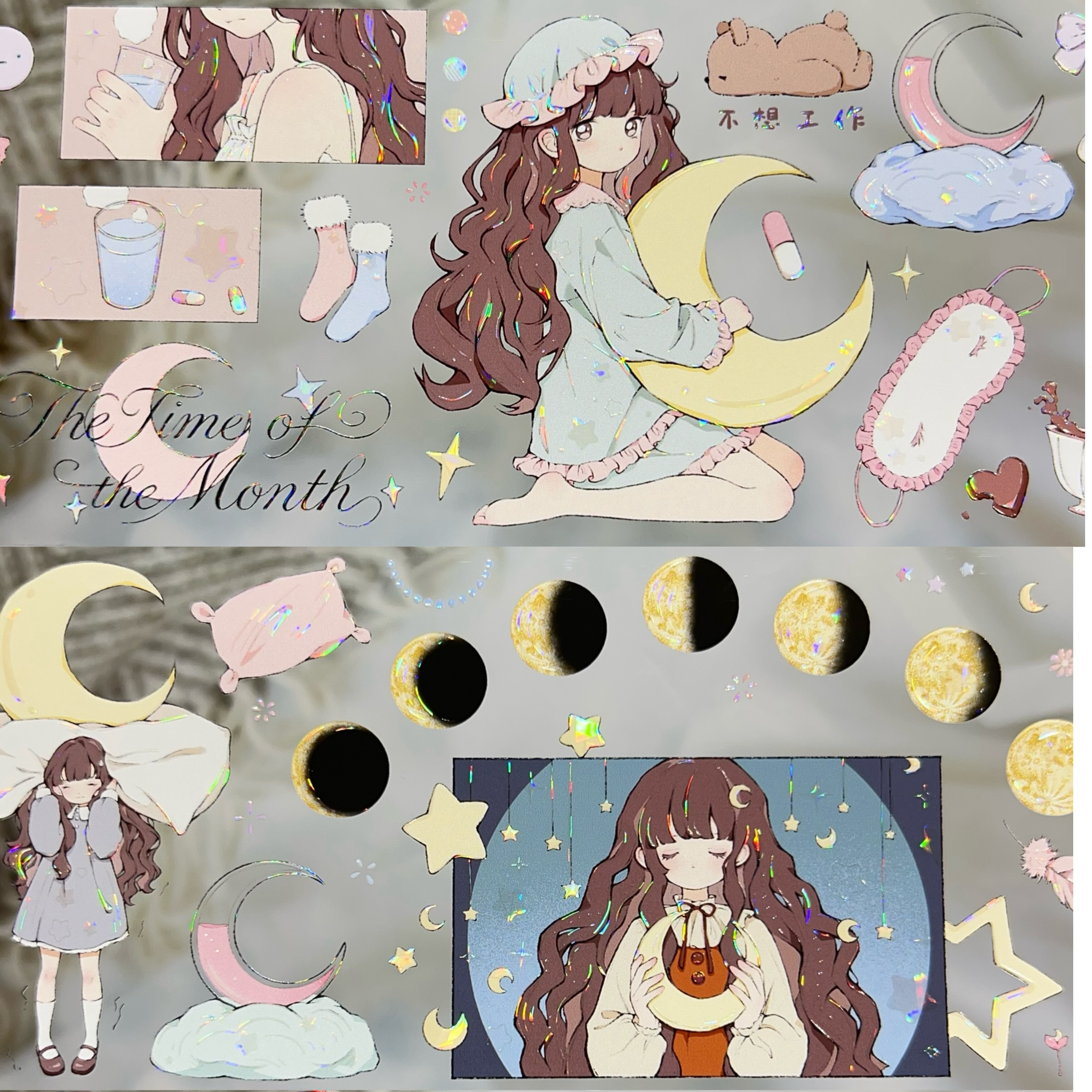 月亮经过时 龟龟新品人物胶带PET贝壳光少女心可爱痛包手帐背卡素