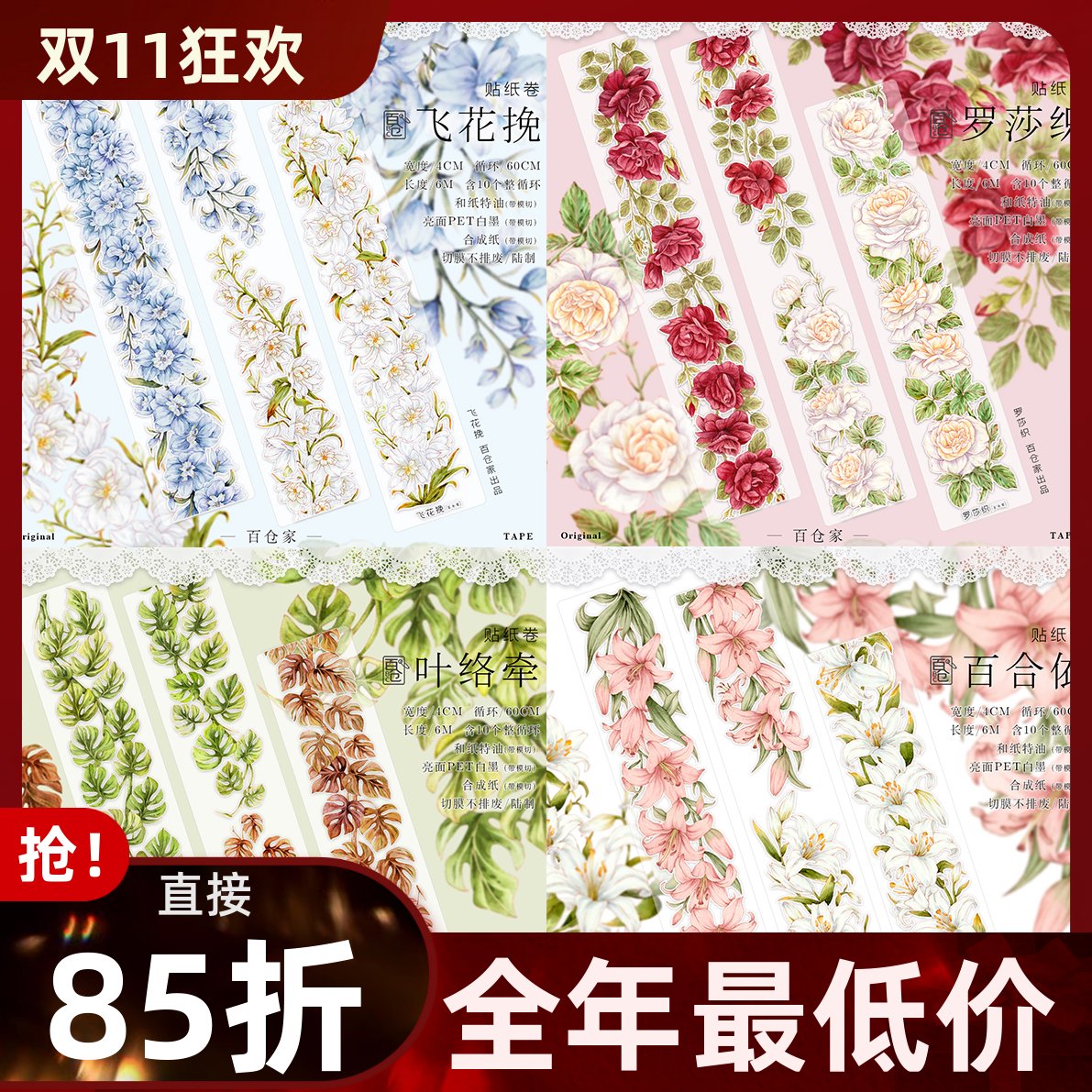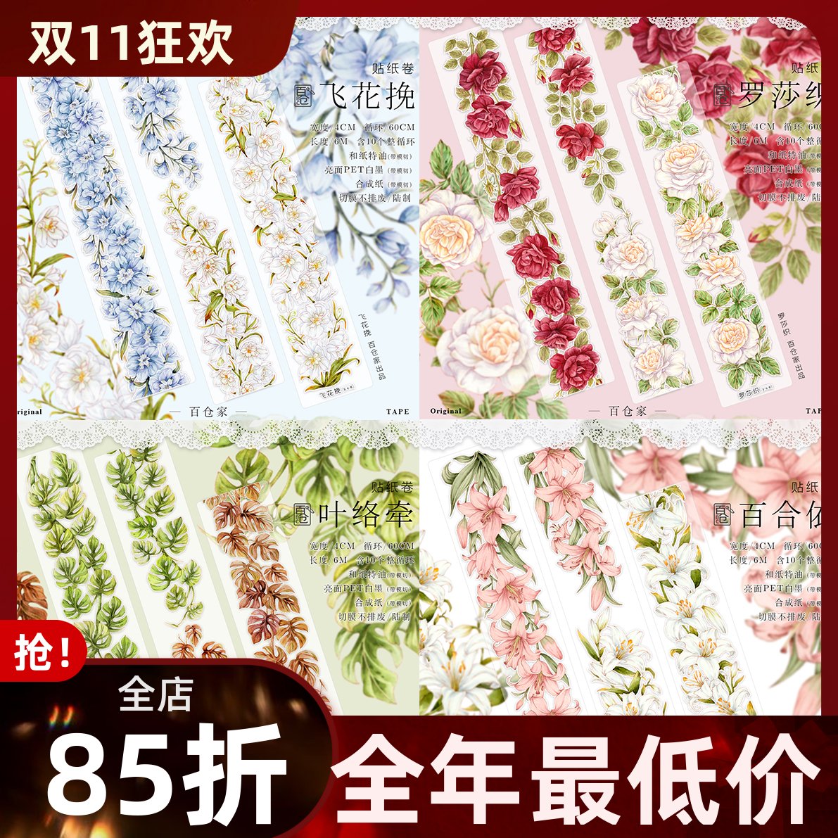 新款拉条花花百合依飞花挽罗莎织叶络牵轻复古百仓家手帐和纸胶带