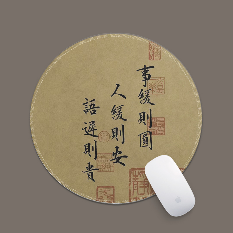 事缓则圆创意国风毛笔字书法圆形小号锁边防滑加厚可办公家用水洗