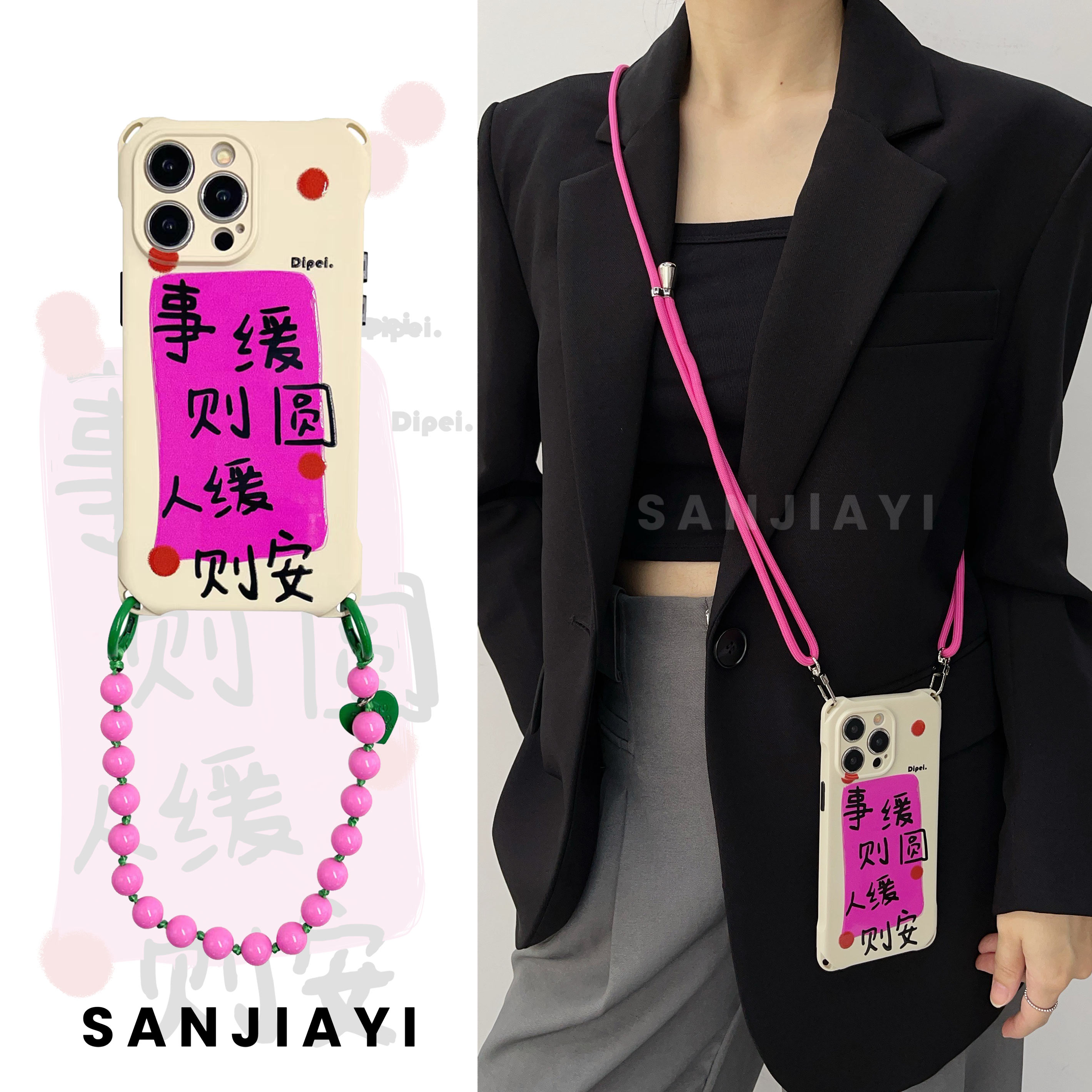 向日的浆果ins小众国风创意文字事缓则圆纳福猫咪挂绳适用苹果17