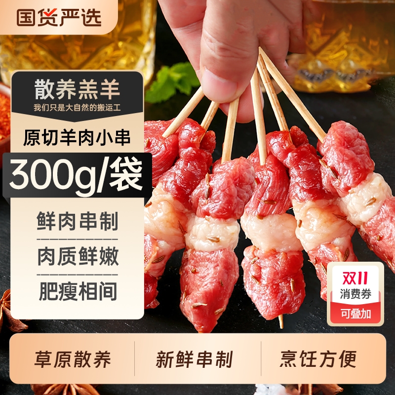 羊肉串新鲜羊肉原切牙签肉串儿童烧烤小串烤肉空气炸锅半成品食材
