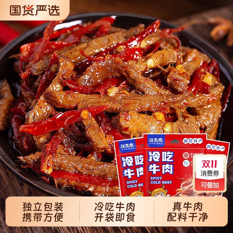 江志忠香辣冷吃四川495g袋装开袋即食牛肉特色美食配料干净麻辣