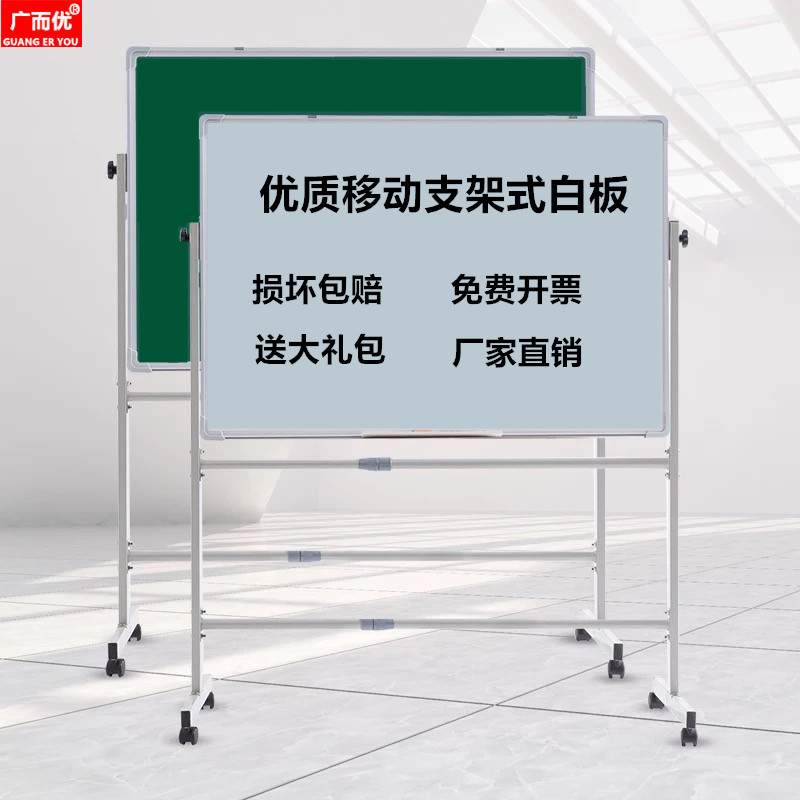 热销顺丰发货广而优移动白板支架式教学培训双面绿板教室幼儿园黑