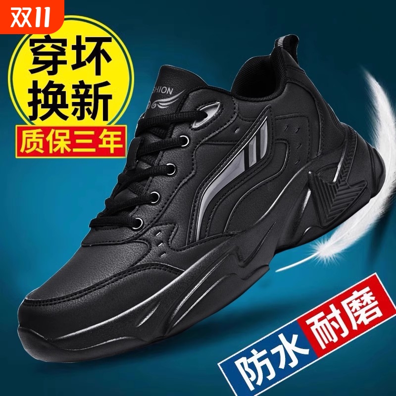 男鞋青少年春秋季黑色皮面特大码46运动鞋男士47脚宽肥胖48跑步