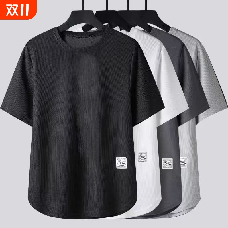 华夫格高丝上衣薄款男士短袖t恤