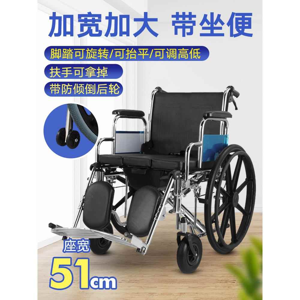 港孚加宽加大坐座便轮椅加固大承重大型大号轮椅残疾人肥胖骨折