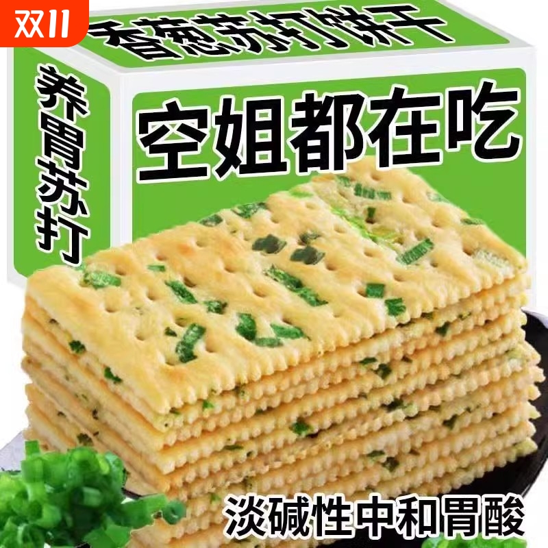 促销香葱梳打饼干咸味早餐夜宵饼干零食苏打养胃胃酸葱香薄脆碱性