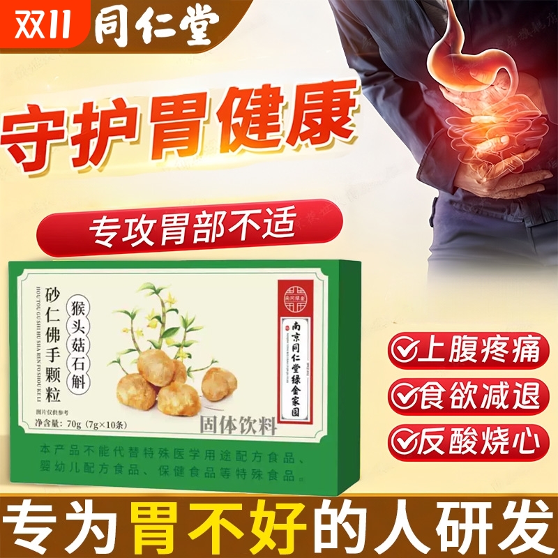 南京同仁堂猴头菇石斛砂仁佛手颗粒胃痛胀反胃酸保护粘膜调理冲饮