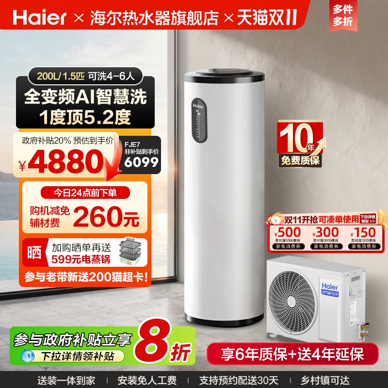 海尔小红花套系空气能热水器家用200升变频超一级FJE7节能F5