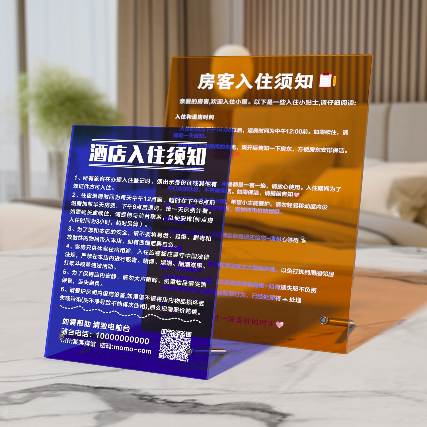 民宿入住须知亚克力立牌摆台警示牌wifi密码提示牌标识牌小心地滑
