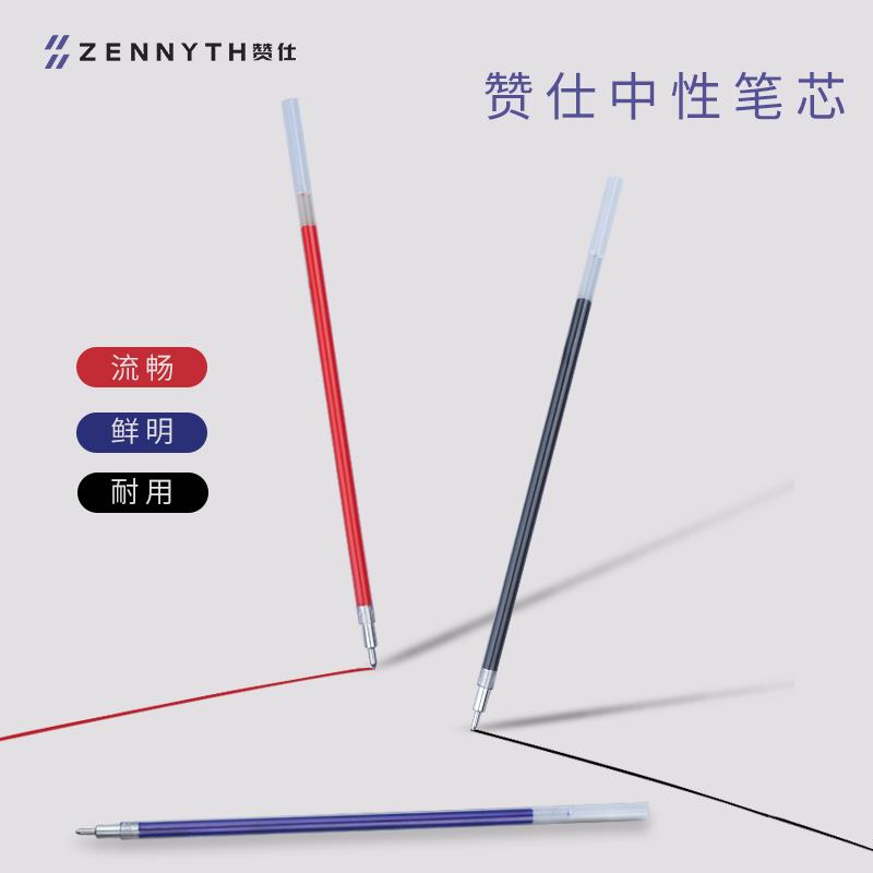赞仕按动中性笔芯丽飞灵0.42mm速干黑色芯书写顺滑 领航破晓适