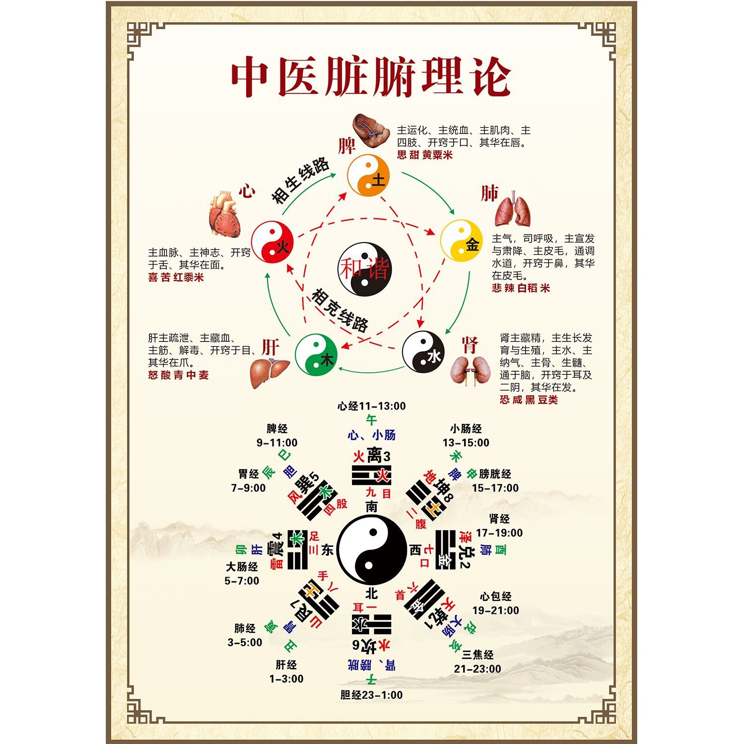 中医五行脏腑理论知识中医养生理疗海报贴纸装饰挂画