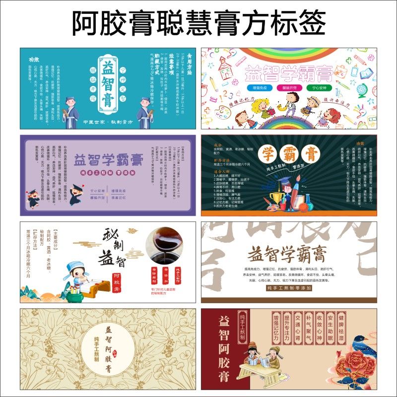 益智学霸膏贴纸阿胶膏聪慧膏方标签30ml袋子秘制驻颜纯手工定制作