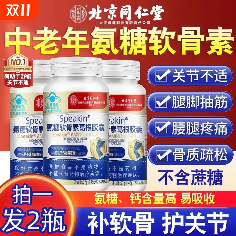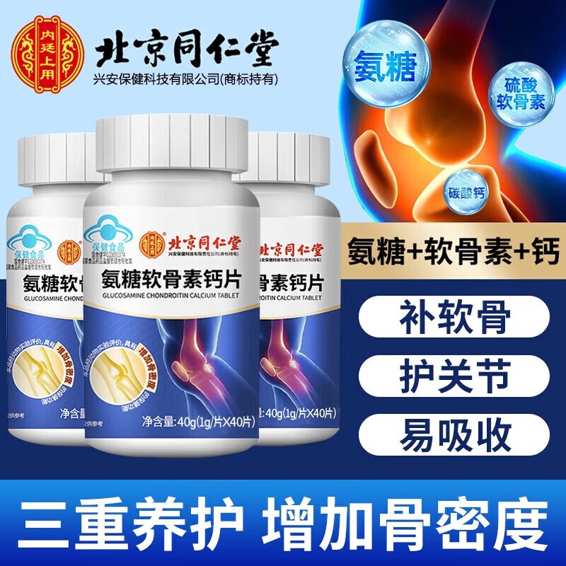 北京同仁堂氨糖软骨素钙片中老年补钙护关节护膝疼痛旗舰店正品