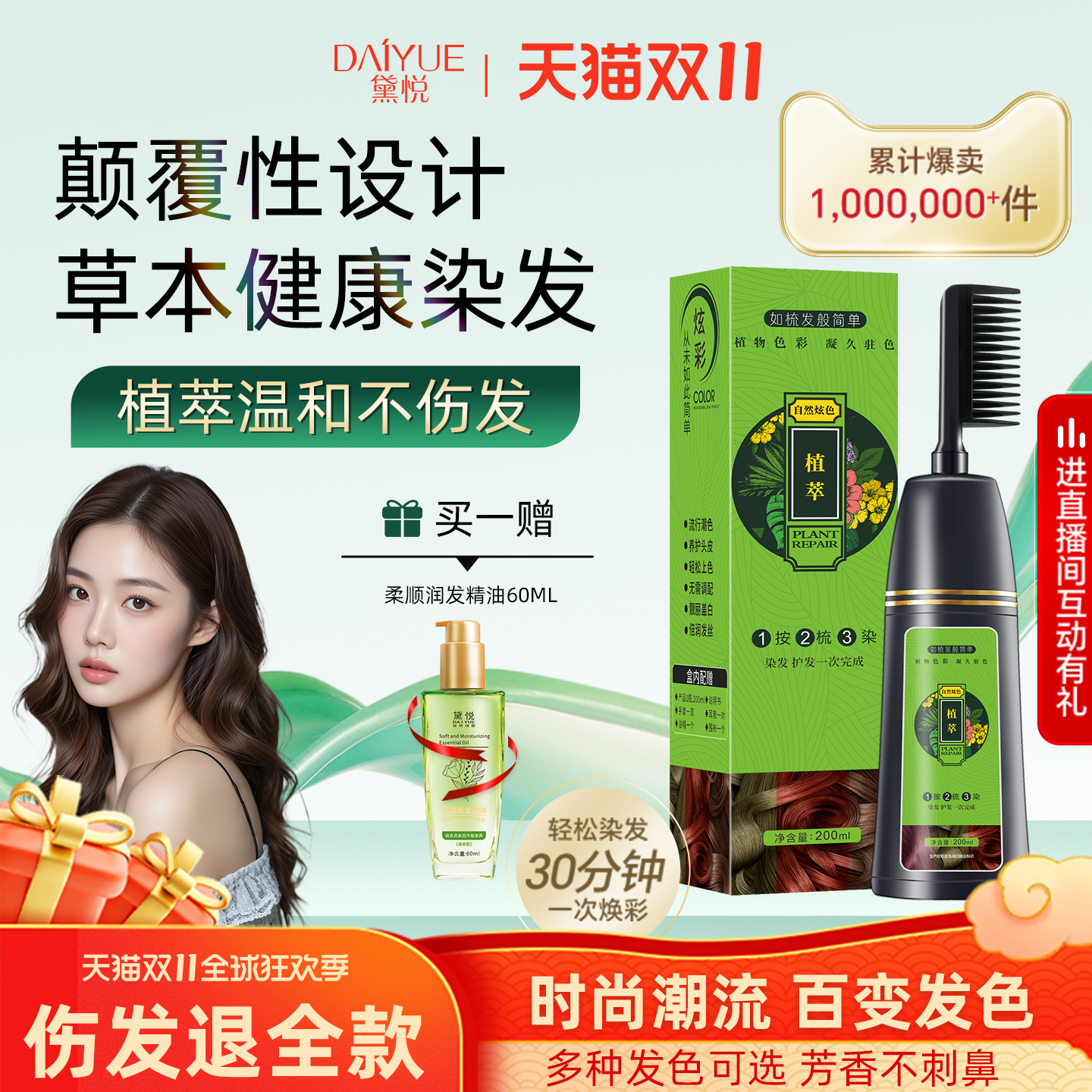 全网热销100w|纯植物泡泡染发剂