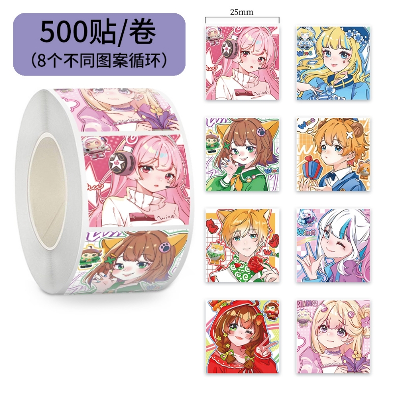 500贴ins风爆款蛋仔派对拟人版卷卷贴少女心胶带贴纸封口贴便签