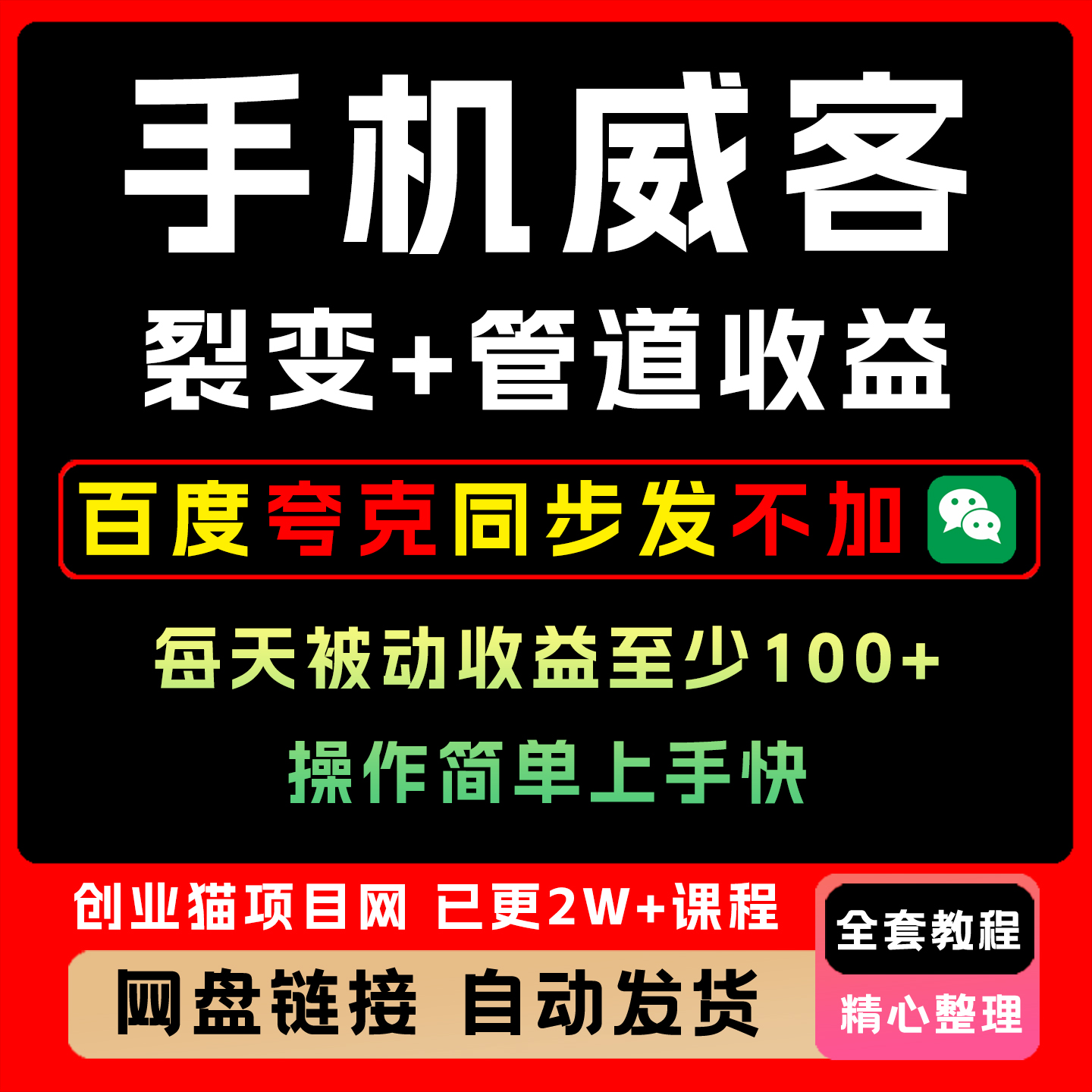 2025手机威客裂变+管道收益 每天被动收益至少100+