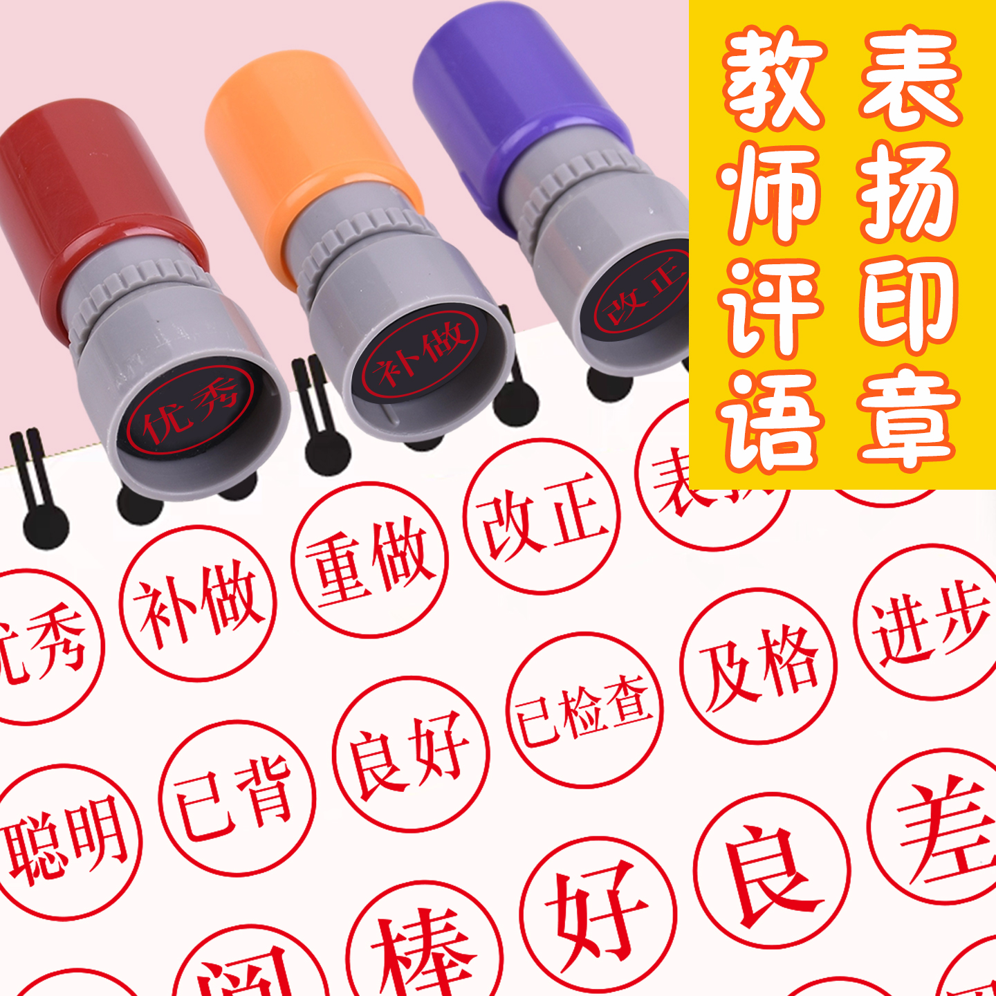 教师用印章奖励小学生儿童盖章已读已背已查良好表扬通过评语章印按压