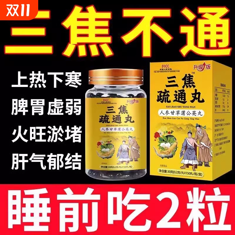 全躯通焦丸上热下寒脾胃调理三焦中焦不通瘀堵虚不受补淤堵内火旺
