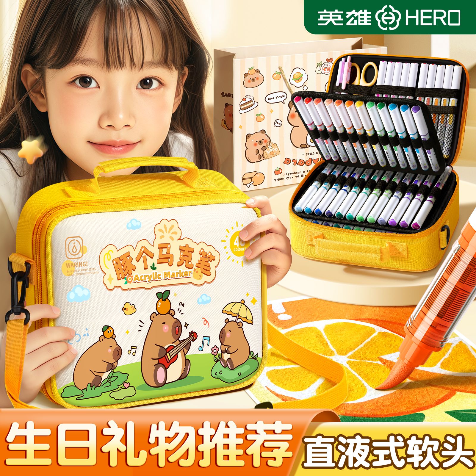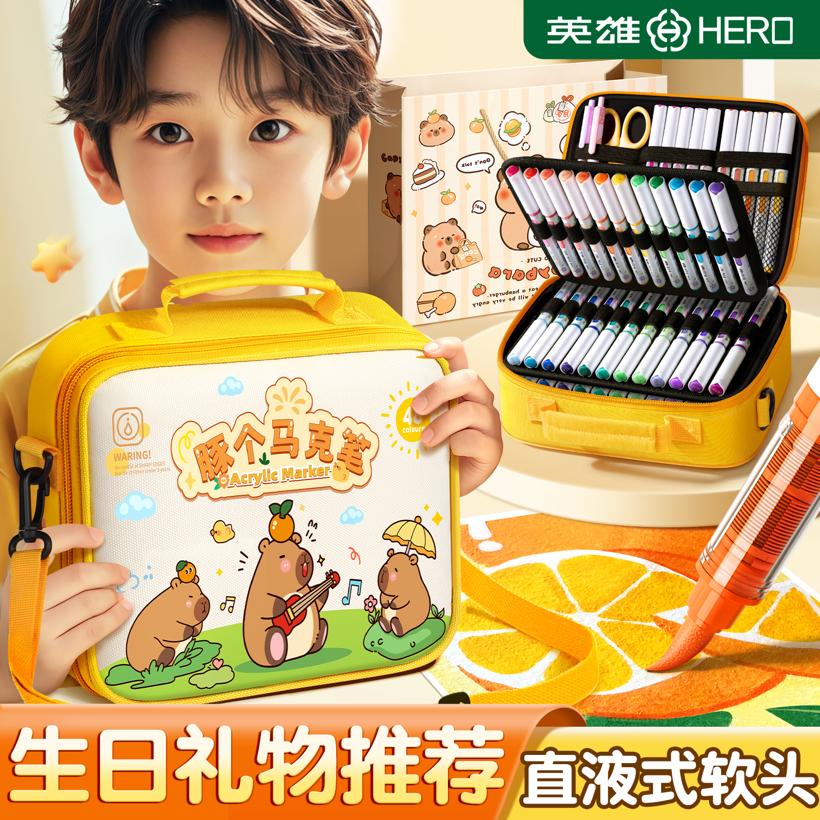 英雄直液式丙烯马克笔软头水彩笔高颜值斜挎芝士包不透色可叠色小学生