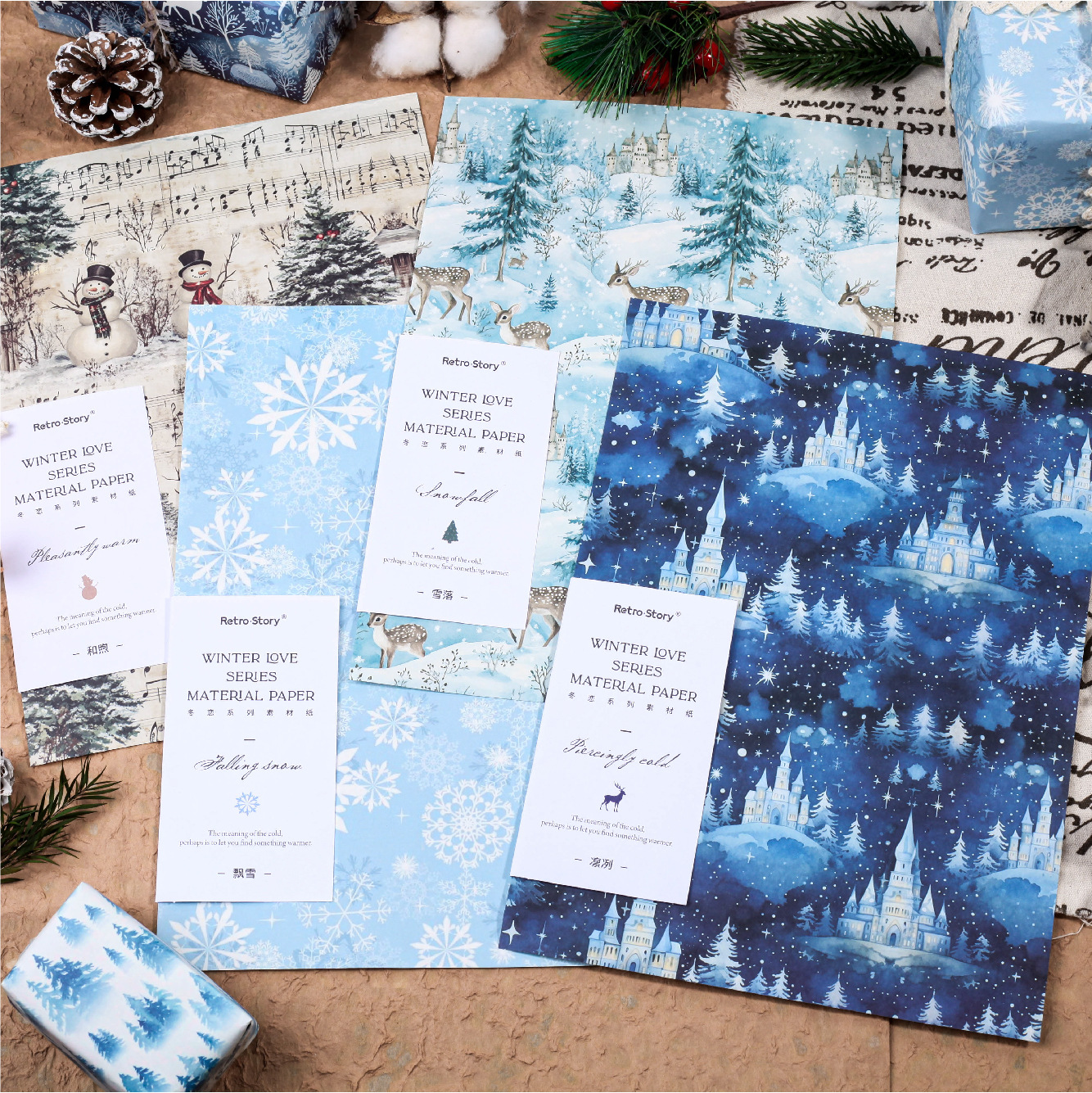 扎痛包背景纸手工纸素材纸手账DIY蓝色系冬日雪花圣诞节谷美背景