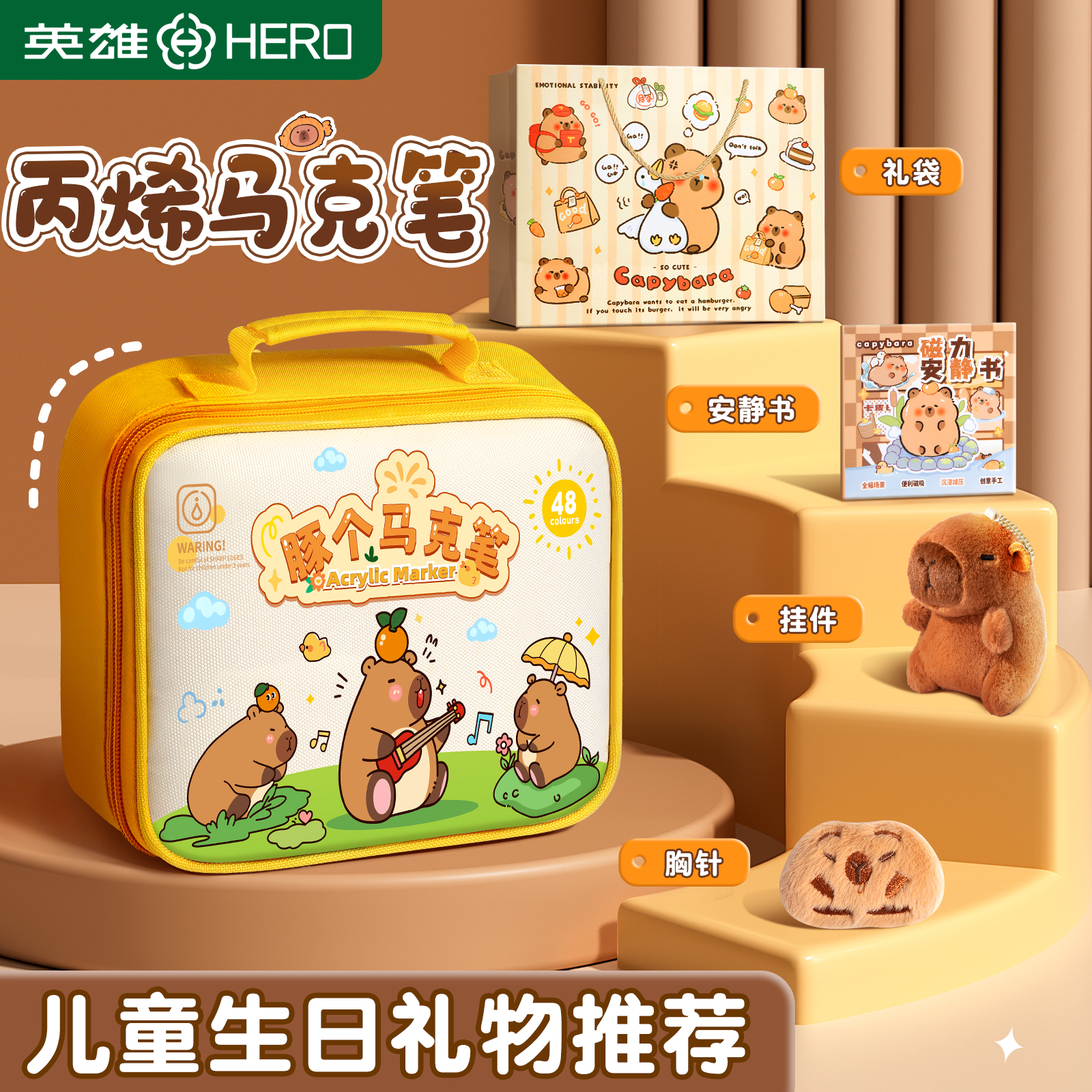 六一儿童节礼物!卡皮巴拉直液式丙烯马克笔软头水彩笔高颜值斜挎包不