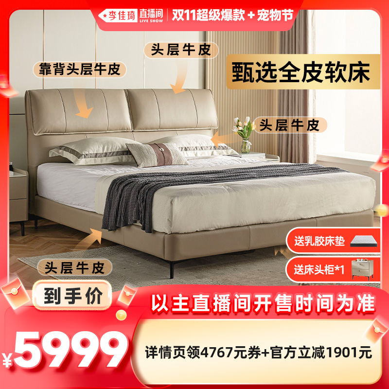 【李佳琦直播间超级爆款+宠物节】慕思全真皮软床头层牛皮真皮床
