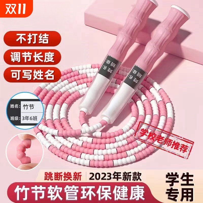 儿童可签名竹节跳绳幼儿园小学生一年级初学者专用可调节软珠跳绳