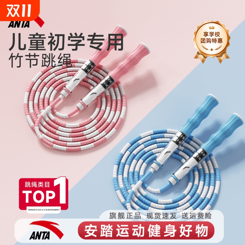 安踏竹节跳绳儿童小学生初学专用软竹节幼儿园一年级初中生成人绳