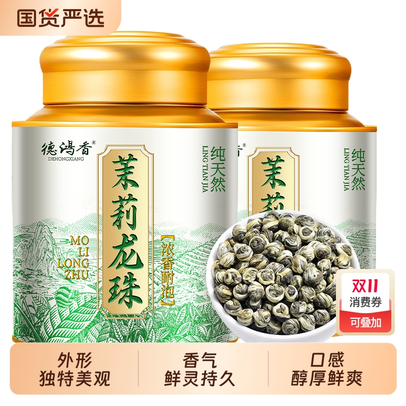 【大份量]茉莉龙珠浓香型绿茶上等花香浓郁特级耐泡花茶罐装