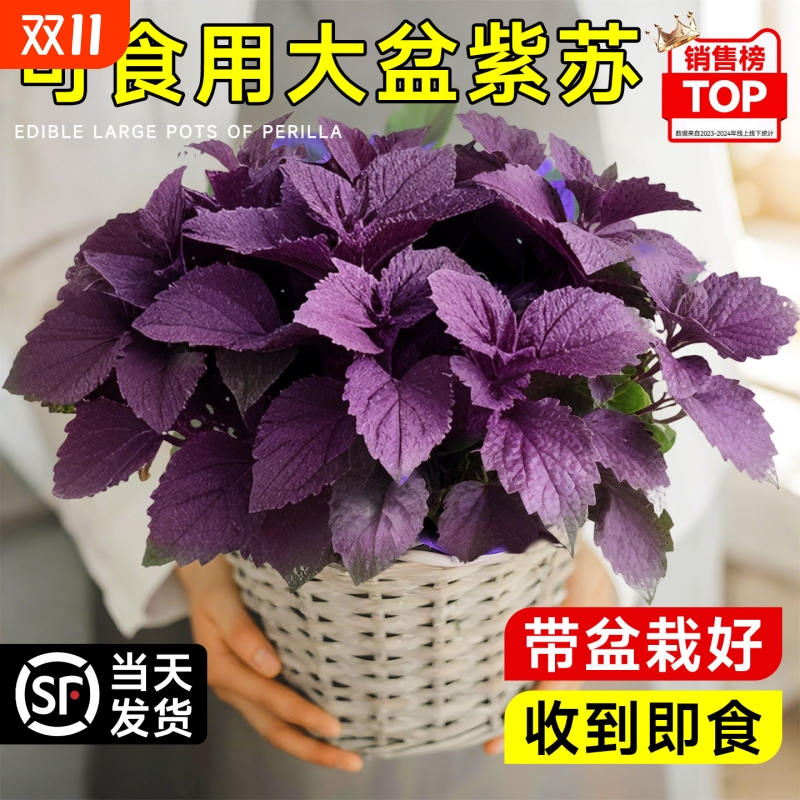 紫苏苗盆栽可食用厨房新鲜紫苏叶