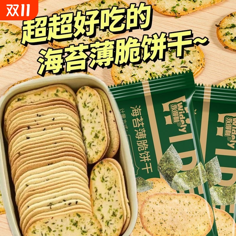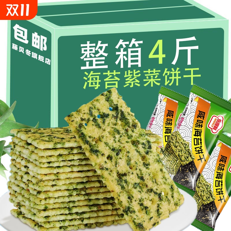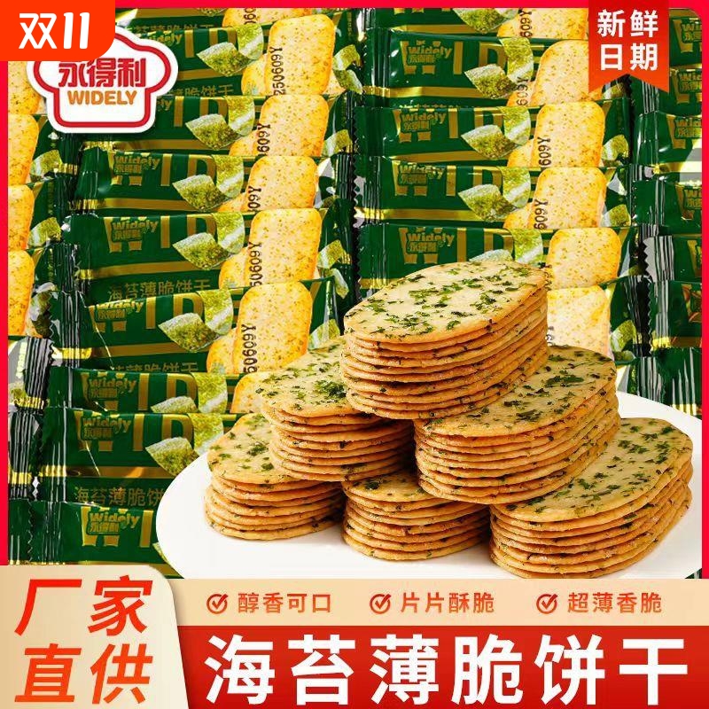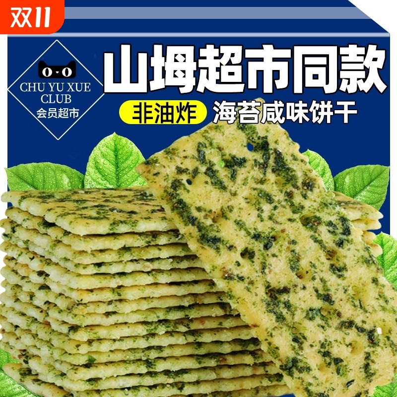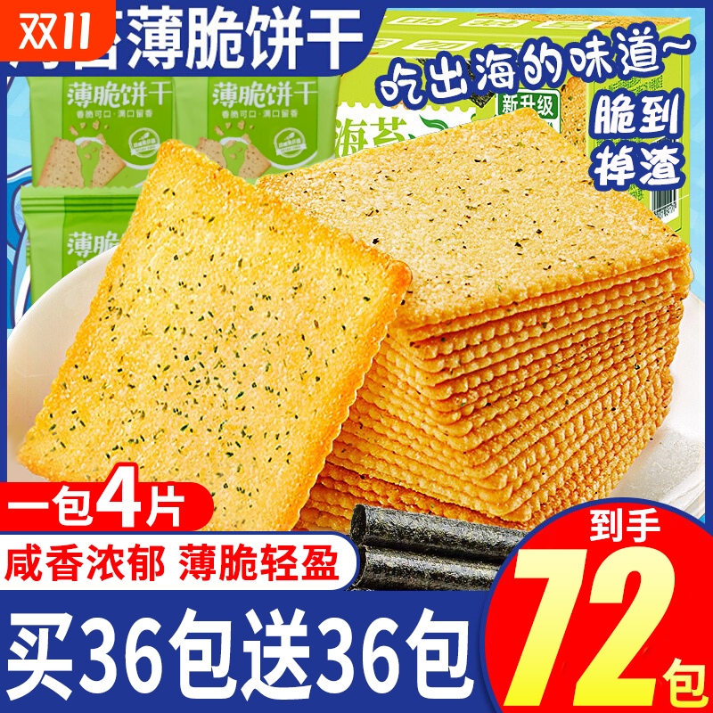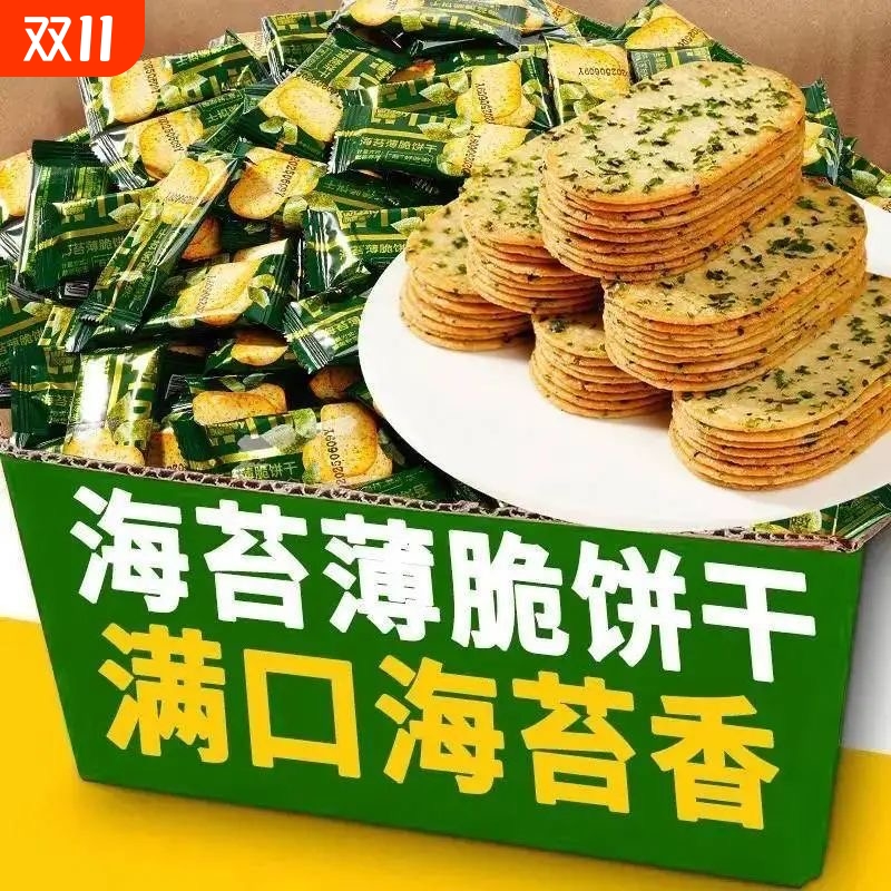 山坶超市海苔饼干紫菜薄脆苏打咸味早餐网红休闲整箱代餐饱腹零食