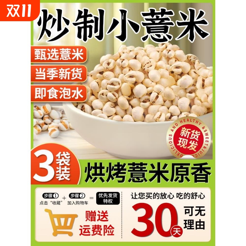 炒薏仁米官方旗舰店薏米仁爆米花开袋即食古法炒熟的意米仁薏苡仁