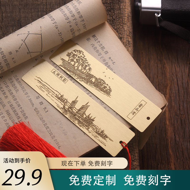 江苏太湖旅游文创产品无锡纪念品书签黄铜范畴鼋头渚帆船金属刻字