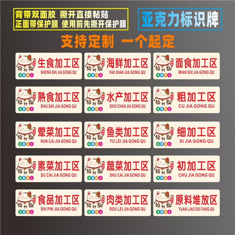 冷冻冷藏区亚克力标识牌粗加工区荤菜素菜保鲜留样生食熟食凉菜区