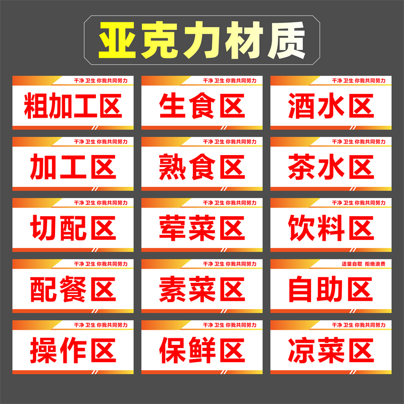 亚克力凉菜区生食区标识牌