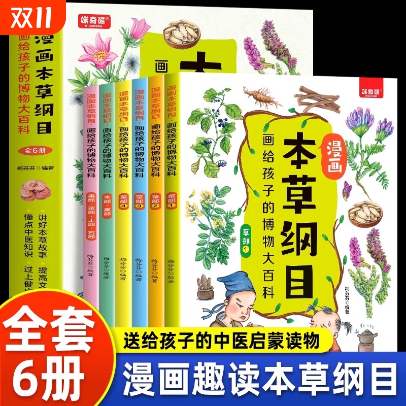 漫画本草纲目全套6册画给孩子的博物大百科儿童中医启蒙经典中草药彩