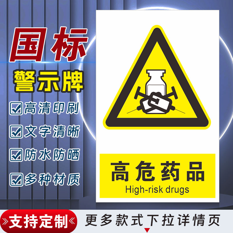 高危药品安全标识牌警示指示牌禁止吸烟有电危险提示牌严禁烟火标签贴