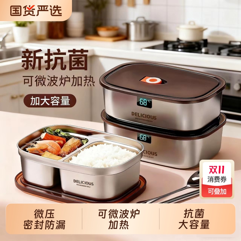316不锈钢分隔饭盒抗菌上班族学生带饭微波炉加热便当餐盒多层