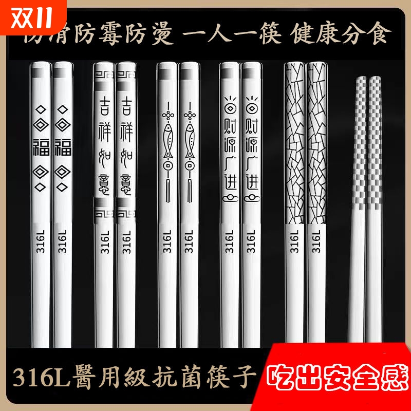 316不锈钢筷子分餐家用防滑霉304合金属商用快子一人一筷高档抗